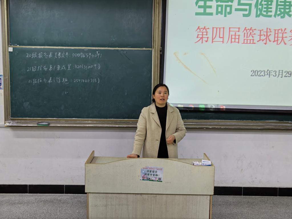 彭丽萍针对许多学生阳康后身体素质恢复情况,向同学们提出五点要求:一是加强安全意识,自愿组建队伍;二是做好个人防范,确保自身安全;三是尊重裁判对手,公平公正比赛;四是文明观看比赛,展现良好素质;五是文明素养养成,遵守校规校纪。她表示剧烈的篮球比赛,对身体素质要求较高,希望同学们根据自身情况自愿组队,本着“友谊第一,比赛第二,重在参与,确保安全“的原则参与比赛,并预祝本次篮球赛取得圆满成功。