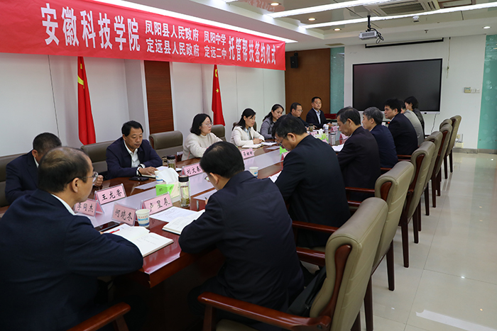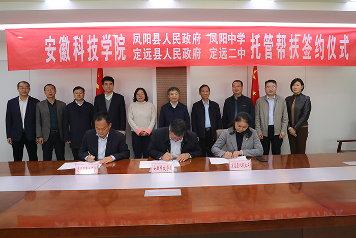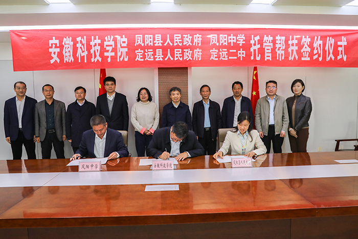 10月28日上午,与凤阳县人民政府、定远县人民政府、凤阳中学、定远县第二中学托管帮扶签约仪式在凤阳校区图书馆十楼会议室举行。校党委书记蒋德勤,党委副书记、院长李震,党委委员、纪委书记、监察专员王强,党委委员、副院长李升和,凤阳县人民政府副县长张艳,定远县人民政府副县长许倩,滁州市、凤阳县、定远县教育体育局、凤阳中学、定远二中相关领导同志参加仪式。
